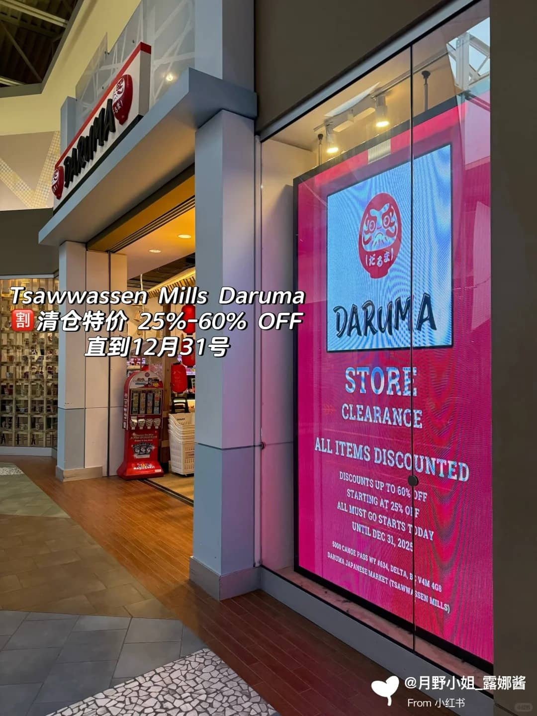 Daruma, the Japanese snack shop inside the Tsawwassen Mills mall, closed on December 31, 2025, after shoppers spotted a clearance notice and shared it on Chinese social media.